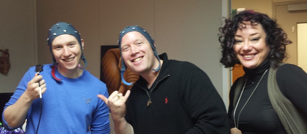 Experimenting with new neurofeedback protocol, From Left: Daniel, Paul, Tanaz