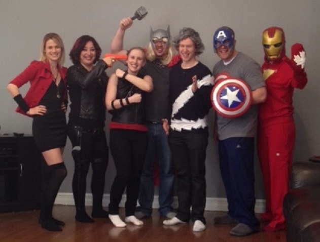 Before Avengers Age of Ultron Movie: Liz (Scarlet Witch), Tanaz (Black Widow), Emily (Hawkeye), Matt (Thor), Daniel (Quicksilver), Paul (Captain America), Kim Frewen (Iron Man)